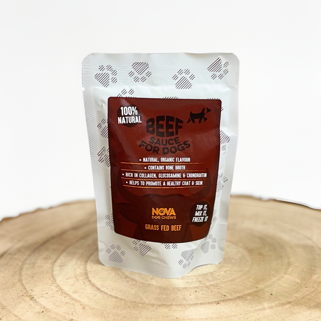 Nova sauces are 100% natural and are rich in collagen, chondroitin and glucosamine, this acts to help lubricate and reduce inflammation in joints, promote glossy fur, soft skin and strong nails.
